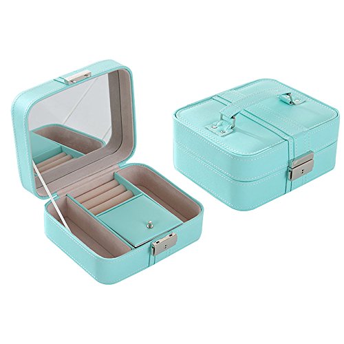 The Best Travel Jewelry Box: The combination of large mirror inside for makeup and dress, the lock to protect your jewelries, the compact size and the comfortable handle makes this one be the best travel jewelry box ever