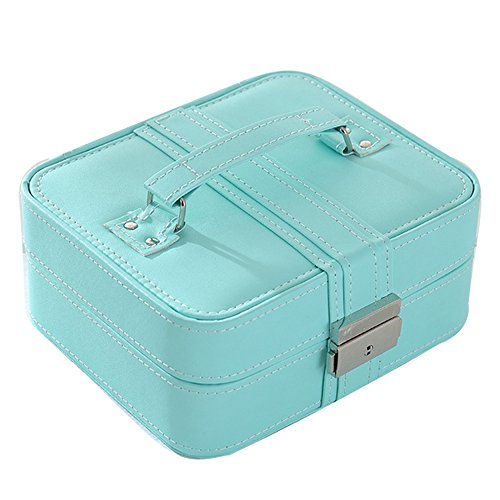 Aco&bebe House Simple Travel Jewelry Box Organizer - Large Mirror & Lockable Jewelry Case (Blue)
