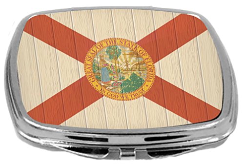 Rikki Knight Compact Mirror on Distressed Wood Design, Florida Flag, 3 Ounce