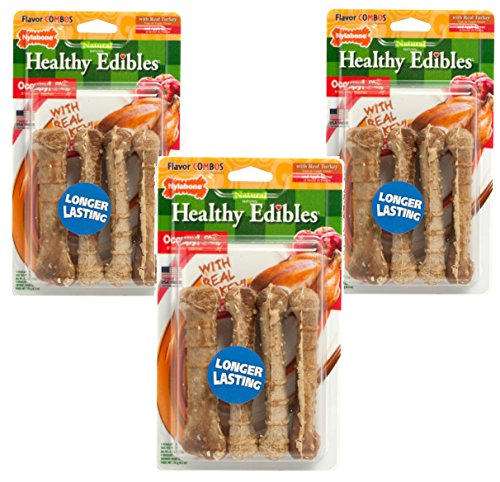 -. Title : Nylabone Healthy Edibles Turkey and Apple Flavored Dog Treats, Size Regular - 12 Bones Total(3 Packags with 4 Bones per Package)