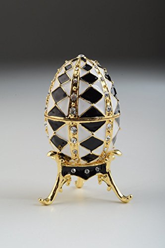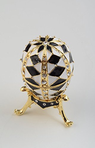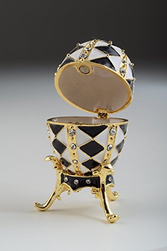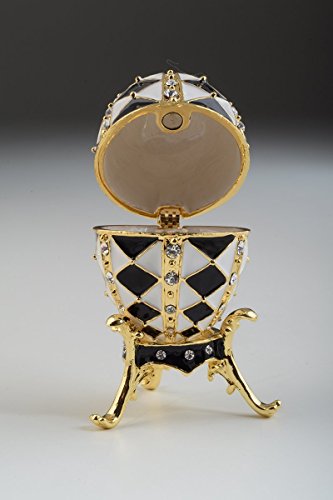 Black and White Faberge Egg with Gold Necklace Inside Trinket Box