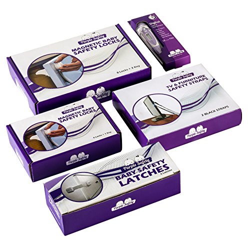 Not only do these latches require no tools, but they also maintain the aesthetic appeal of the furniture. The Purple Safety system ensures your baby's safety by preventing them from accidentally crawling or toddling cabinet doors or kitchen drawers and bumping their heads or getting their hands on a dangerous object. An added benefit is after you take down the childproof locks, they leave no marks or scratches on your furniture!