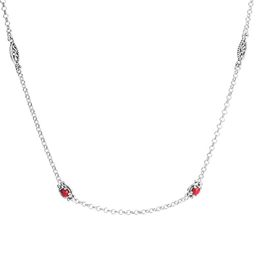 Find your fabulous side wearing this scroll-inspired necklace, boasting both round red coral stations and marquise-shaped stations