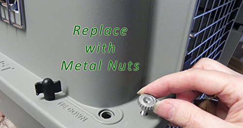 -. Binding : Misc. -. Brand : DryFur® -. Color : Gray -. Feature : Replaces standard black plastic wing nuts (Does not include bolts) / Solid Metal 10-24 Nuts fit existing Bolts on Sky Kennel, Vari Kennel and all Petmate Aspen Kennels / Airline Required, Airline Approved / Easy to install just remove Black Plastic Wing Nuts and Replace with Our Special Metal Nuts / Save Money $ - by only purchasing replacement Nuts to fit your NEW Kennels Existing Bolts -. Label : KC Pet Products LLC -. Manufacturer : KC Pet Products LLC -. MPN : Zinc Nuts -. PackageQuantity : 1 -. PartNumber : Zinc Nuts -. ProductGroup : Pet Products -. ProductTypeName : PET_SUPPLIES -. Publisher : KC Pet Products LLC -. Studio : KC Pet Products LLC -. Title : Replacement Metal Nuts for Airline Approved Travel Kennel