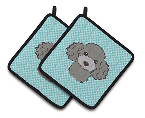 Caroline's Treasures Checkerboard Blue Silver Gray Poodle Pair of Pot Holders BB1197PTHD, 7.5HX7.5W, Multicolor