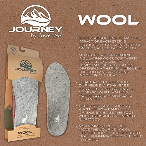 Powerstep Journey Wool Shoe Insoles – Cushioned, Shock-Absorbing Shoe and Boot Inserts for Men and Women – Perfect for Hiking and Running in All Weather Conditions