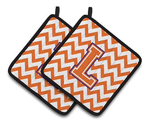 Caroline's Treasures Letter L Chevron Orange & Regalia Pair of Pot Holders CJ1062-LPTHD, 7.5HX7.5W, Multicolor