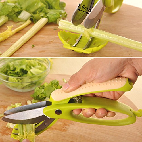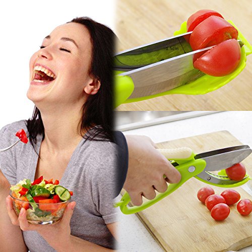 Useful: 2-in-1 kitchen scissors for cutting,chopping and tossing cucumbers,onions,tomatoes,mushroom,peppers and more into desired slices easily and quickly without scratch in your bowl.