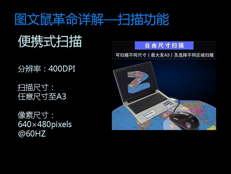 Scan any size up to A3 or just scan a select area on a large sheet of paper. So go ahead and scan the precious art your child has drawn on the wall, or make the world flat by scanning a globe. The possibilities are endless. Just remember. With a mouse like this on your desk, your screen and keyboard might feel a little insecure.