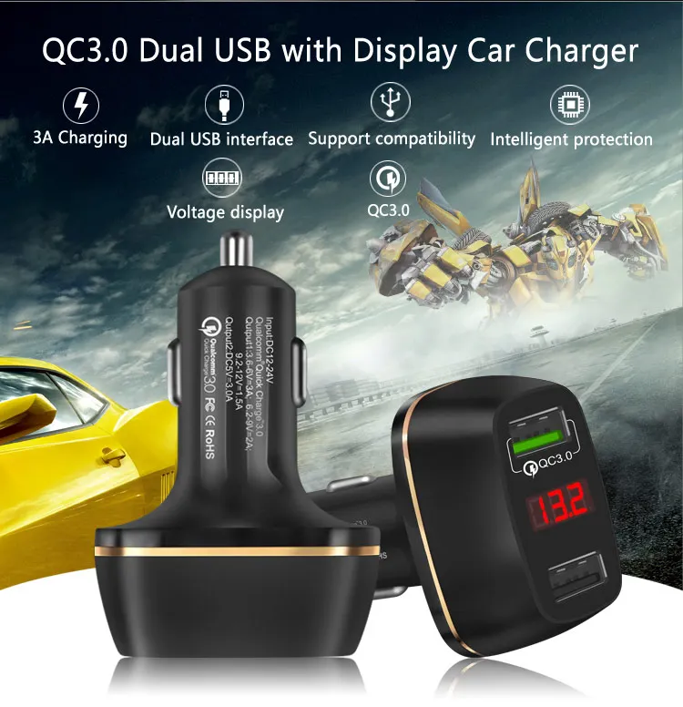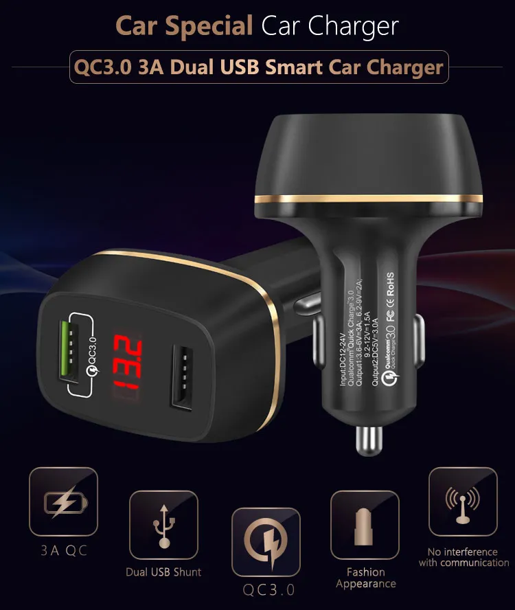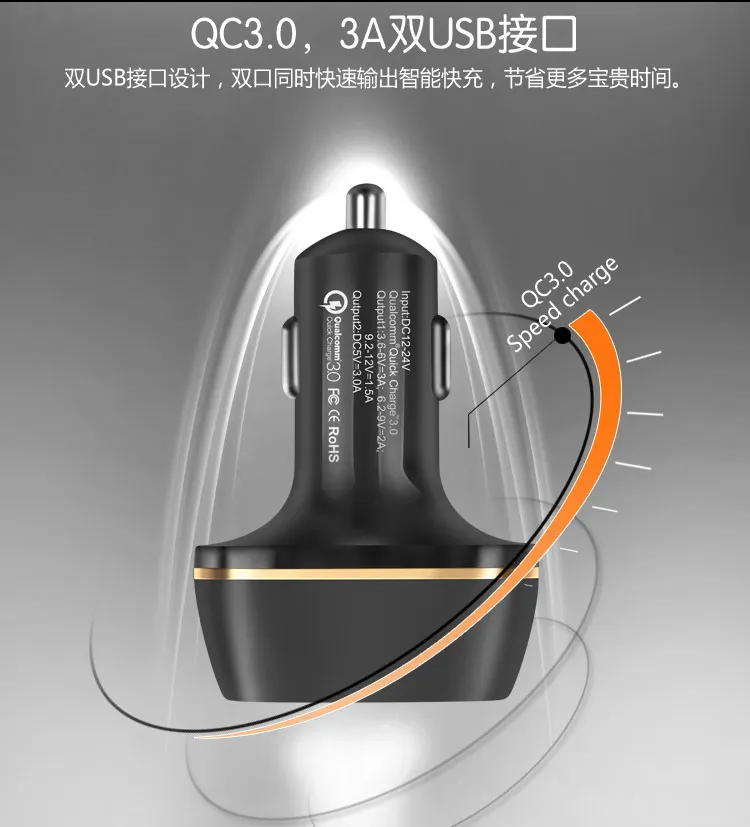 Dual USB Car Charger QC 3.0:Quick USB Car Charger 3.0