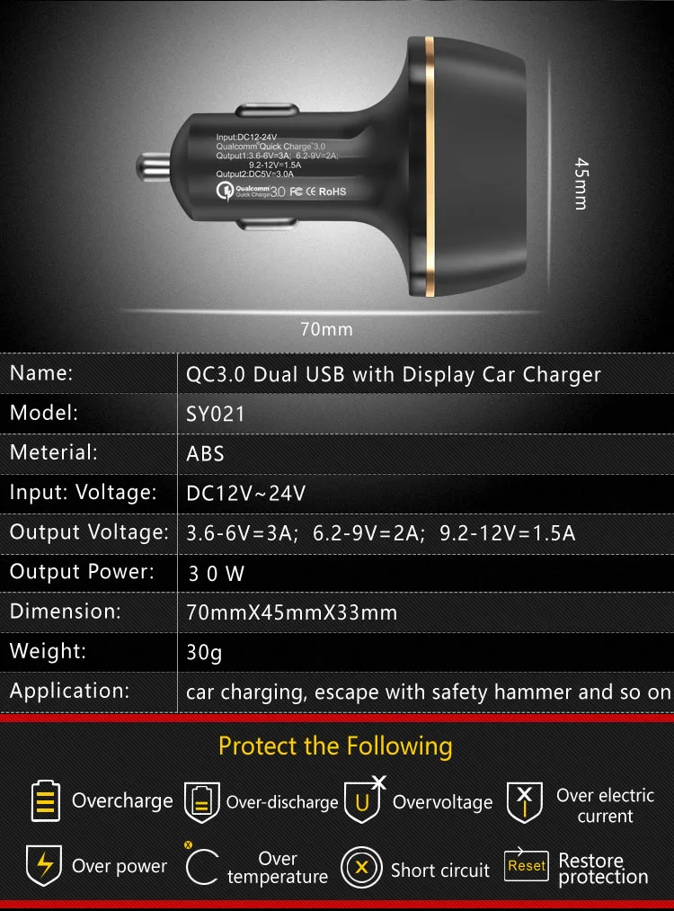 Product Name:USB Car Charger 3.0