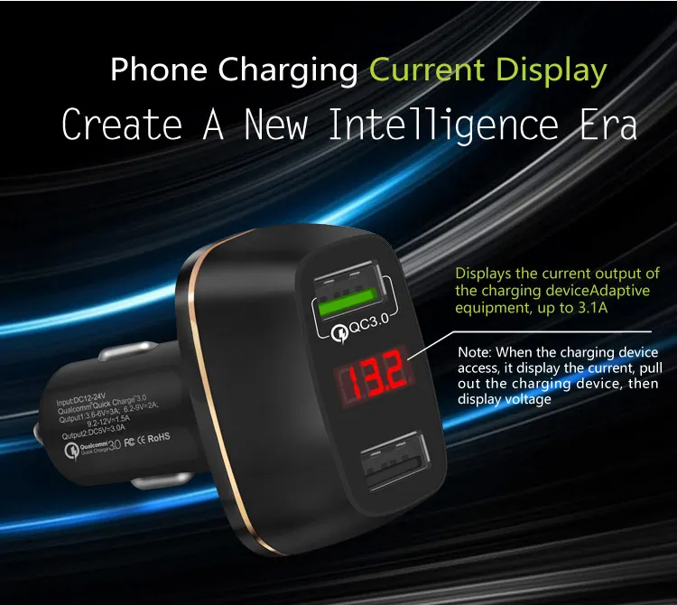 Usb Car Charger LED display:LED Phone Car Charger