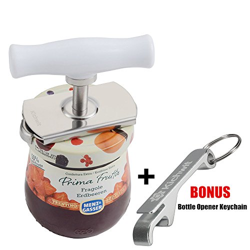 Kichwit Arthritis Jar Opener Stainless Steel Lids Off Jar Opener - Free Bottle Opener Keychain Included