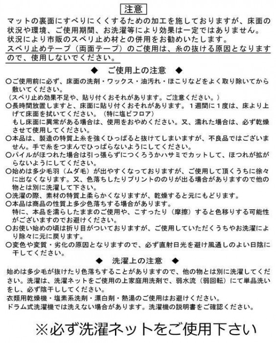 | 素材・材質 | ポリエステル・レーヨン・その他(裏面すべりにくい加工) |