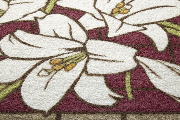 | 横幅約75cmのワイドサイズ!!大輪のカサブランカが咲き誇るエレガントなデザインのトイレマット。裏面に滑りにくい加工を施しているので、横ズレしにくいです!! |