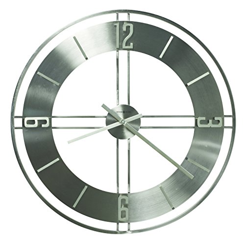 -. Feature : This 30" diameter wrought iron gallery clock is finished in satin nickel. / The open dial features an applied circular brushed nickel finished numeral ring with Arabic numerals at the 12, 3, 6, and 9 positions, as well as bar style hour markers. The numerals and hour markers are over .25" thick. / Brushed nickel finished hour and minute hands. / Quartz, battery-operated movement requires one AA sized battery (not included). INT1010 / Diameter 30" (76 cm) / Depth 1.75" (4 cm)