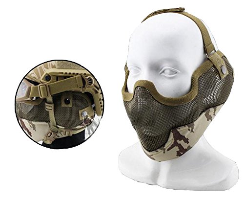 -. Feature : Materials, green low carbon steel,Chin external Adopted 900D Oxford, beautiful and atmospheric, easy cleaning / Metal Mesh Face Mask that Provides Superior protection for the face,Also has the ability to protect your ears / Lightweight Construction for Great Air Ventilation / Design of Double Belt and Wearing more stable,Fully Adjustable with Elastic Strap to fit most people / Steel mask with other goggles, scarves, helmets, masks, hats used in combination,Suitable for scenes : essential tactical, outdoor recreation, leisure, family entertainment,