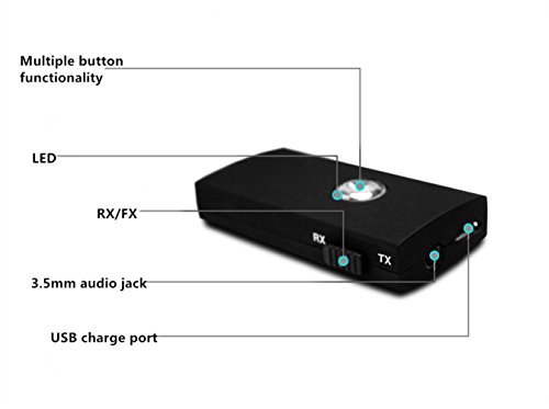 ETvalley Bluetooth 2-in-1 Receiver/Transmitter, Bluetooth Adapter for Stereo Systems, Black