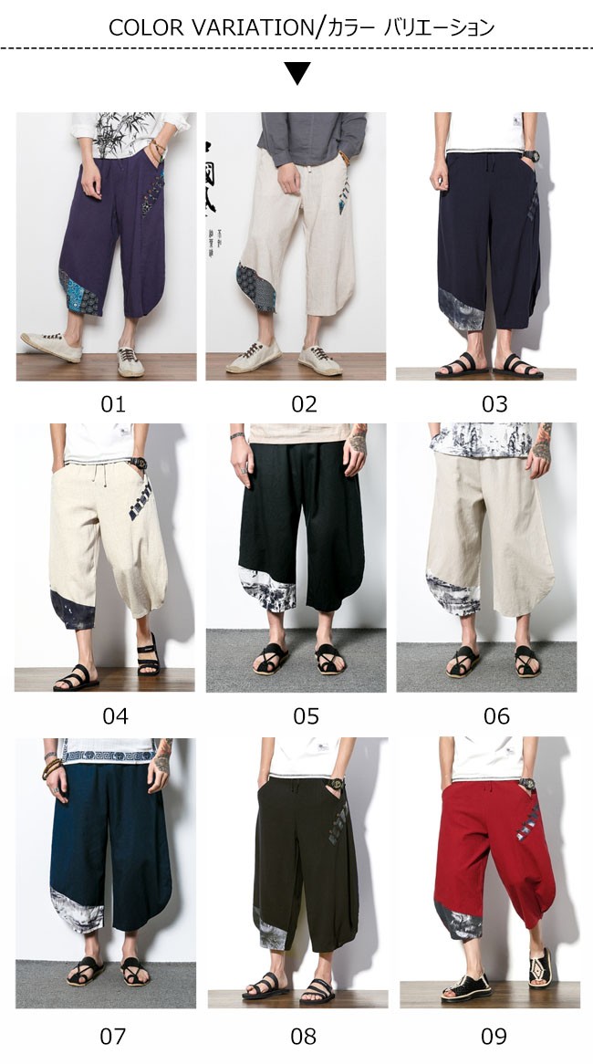 | 商品名 | リネンパンツ 民族風パンツ サルエルパンツ エスニック柄 メンズ ボトムス ワイドパンツ 七分丈 クロップドパンツ カジュアル 大きいサイズ 2017新作 夏 秋 |