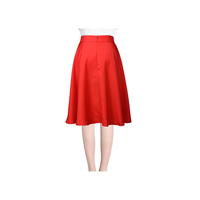 Allegra K (JP) 레이디스 플레어스커트 무릎 길이 A라인 스커트 하이 웨스트 엘레강트 레드 XL