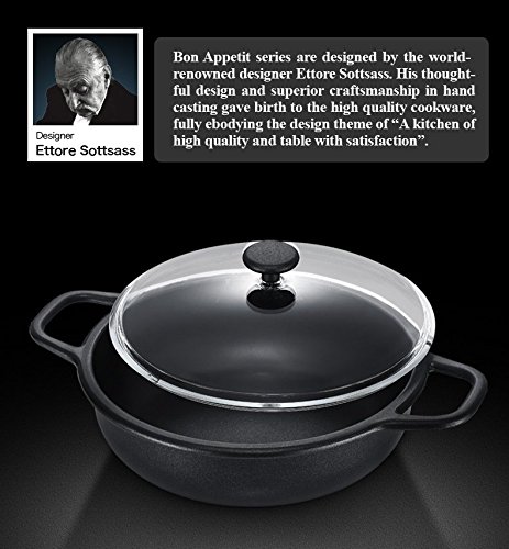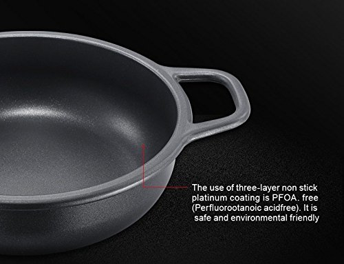 -. Brand : SERAFINO ZANI -. Color : Charcoal Grey -. EAN : 8028460823283 -. Feature : 1. The Bon Appetit series dutch oven use the non-stick platinum coating from Germany, Excalibur PFOA-free (Perfluorooctanoic acid-free), which is safe and environmental friendly. / 2. The body adopts the aluminum casting which speeds up the cooking process. / 3. The pot underwent the micro particle and thermal spraying to have its metal surface. With this surface, it is firmer and more durable. / 4. The Two-side handles are casted together with the body; they are seamless and easy to clean / 5. The long handle underwent the Bakelite interface treatment to enhance its heat- resistant and anti-scald function -. Label : SERAFINO ZANI -. Manufacturer : SERAFINO ZANI -. Model : BA7TE28-C -. MPN : BA7TE28-C -. PackageQuantity : 1 -. PartNumber : BA7TE28-C -. ProductGroup : Kitchen -. ProductTypeName : KITCHEN -. Publisher : SERAFINO ZANI -. Size : 11-inch -. Studio : SERAFINO ZANI -. Title : SERAFINO ZANI Bon Appetit Series 11-inch Aluminum Non-stick Dishwasher Safe Eco-friendly dutch oven with Glass Lid