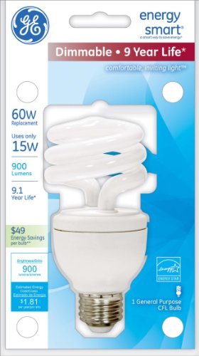 GE Lighting 89623 Energy Smart Spiral CFL 15-Watt (60-watt replacement) 900-Lumen T3 Spiral Light Bulb with Medium Base, 1-Pack