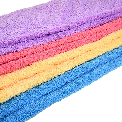 Package Included: 1 x Rose Red Microfiber Hair Towel 1 x Purple Microfiber Hair Towel 1 x Blue Microfiber Hair Towel 1 x Yellow Microfiber Hair Towel 1 x Pink Elastic Headband (Bonus) 1 x Purple Elastic Headband (Bonus)