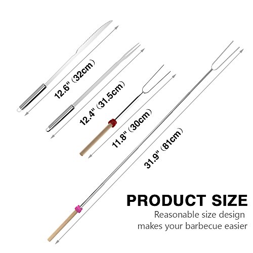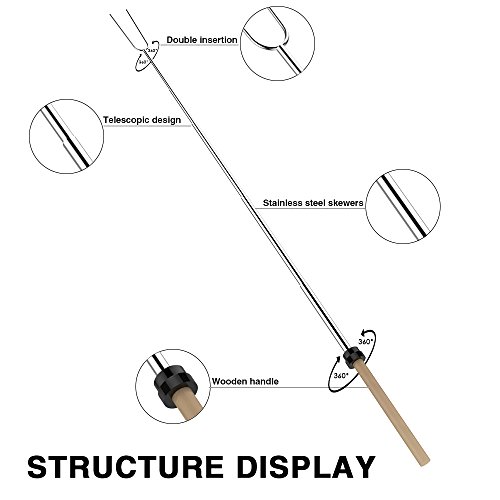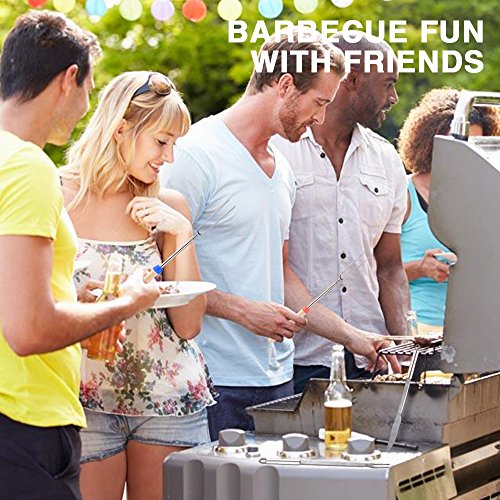 ◆ PORTABLE SIZE. The barbecue skewers can be extending maximum to 81cm for BBQ and shrink minimum to 31cm as a fork for eating.