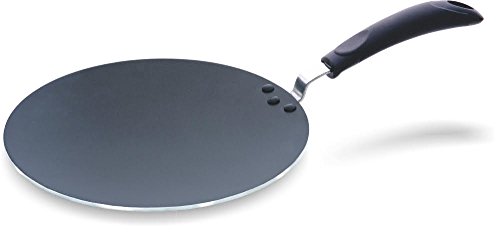 -. Feature : This Indian-style flat griddle is excellent for cooking paratha, chapati, dosa or roti / Also great for use in cooking pancakes, French toast or griddlecakes / Nonstick surface allows exceptional food release to facilitate easy flipping of food, and quick cleanup. / Traditional curved-bottom design reduces energy consumption by limiting heat loss, and produces even cooking. / Bakelite handle stays cool to touch, and feature hang holes for easy storage