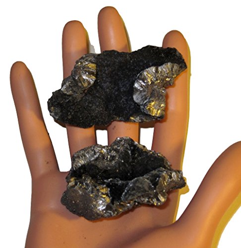 Coal Cluster 01 Set of 2 Silver Black Crystals Good Luck Energy Stone Minerals 2.7"