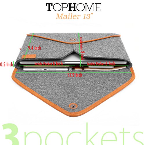 Dimension:34.29*25.4*1.02cm;Weight:0.202kg?Big 1 for Macbook Air 13 and Macbook Pro 13.3;2 small internal pockets for mobile phones, notebooks, cards, USB cables, headphone cables etc.