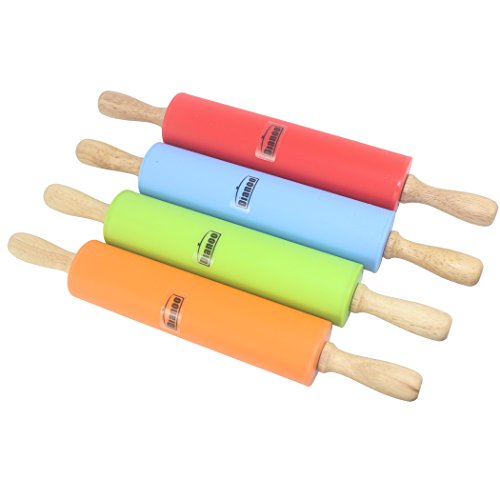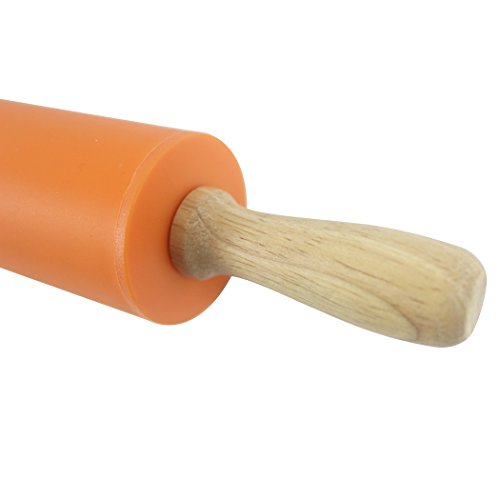 Dianoo Rolling Pin, Non-Stick Silicone Surface Rolling Pin with Wooden Handle for Rolling Dough, Baking - Orange - 12 Inch, 1PCS