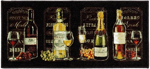Chalkboard paint is all the rage and Mohawk Home has designed a rug inspired by this trend. The wine theme and rich colors are a perfect accent for your kitchen. Printed on the same machines that manufacture one of the world’s leading brands of printed carpet, this rug is extremely durable and vibrant. This technology allows the use of multiple colors to create a rug that is wonderfully designed and applicable to any room in your home. Printed on the same machines that manufacture one of the world’s leading brands of printed carpet, this rug is extremely durable and vibrant. This technology allows the use of multiple colors to create a rug that is wonderfully designed and applicable to any room in your home. With this gorgeous contemporary style and wine themed print, this rug's pile height is 13/32 in high. Remember to keep the pile and fabrics in tip top shape. Area rugs should be spot cleaned with a solution of mild detergent and water or cleaned professionally. Regular vacuuming helps rugs remain attractive and serviceable. Only the best quality materials will do. This rug is printed with a cut pile on Wear Dated 100% nylon, backed with latex. Made in USA.Feature