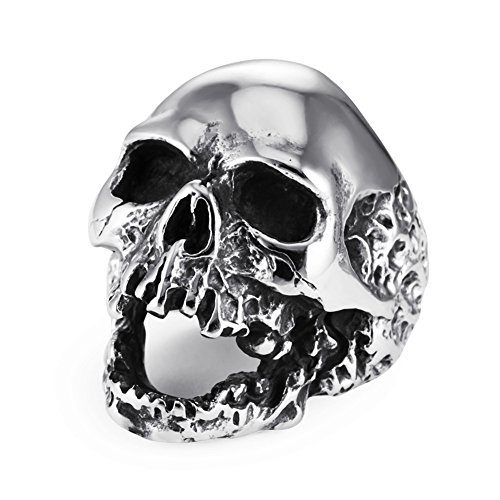 -. Title : JAJAFOOK Vintage Gothic Ferocious Skull Biker Stainless Steel Mens Ring, Silver