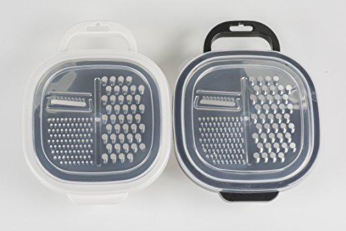 DecorRack Grater with Container, 3-Way Stainless Steel Grater -BPA Free-, Portable To Go with Lid for Camping, Picnic, Travel, White