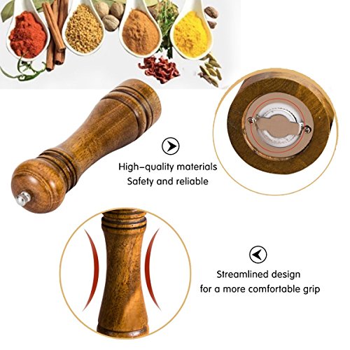 Bluestar 8 Inches Salt and Pepper Mill Solid Wood Pepper Mill with Strong Adjustable Ceramic Grinder