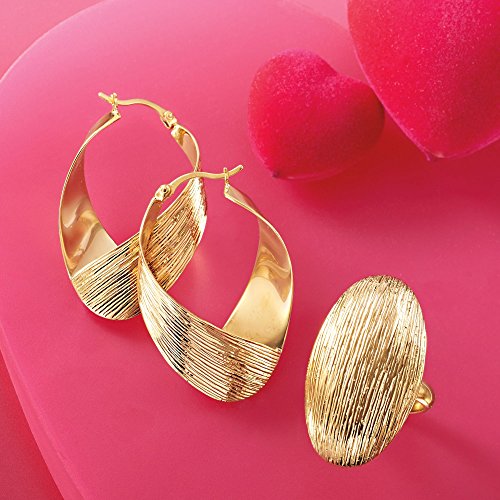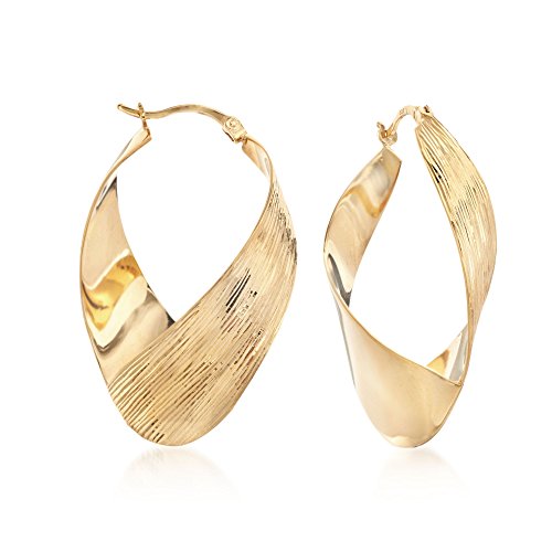 Developing fresh ways to wear timeless looks, Ross-Simons masters the classics. Diamond-cut lines bring a nature-inspired texture to these dramatic twisted hoop earrings. Hanging length is 1 5/8". Snap-bar, 18kt yellow gold over sterling silver hoop earrings. Each Ross-Simons item arrives in a fine jewelry presentation box. Shop Ross-Simons jewelry risk-free as all items include a 30-day, 100% money-back guarantee.Feature