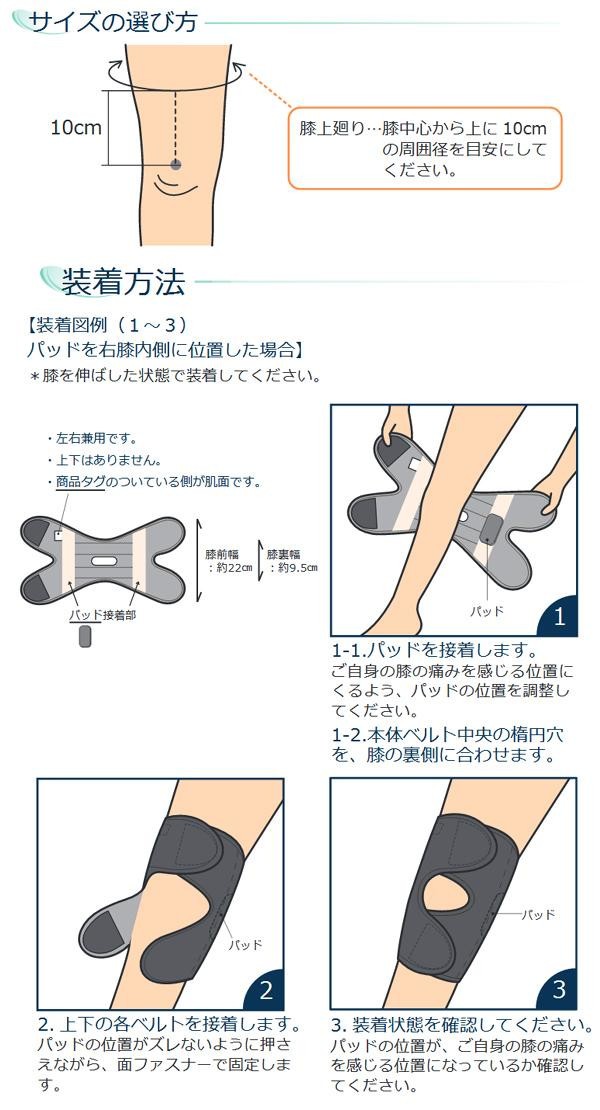 | 取り外しできるパッド付の膝関節バンド。 |