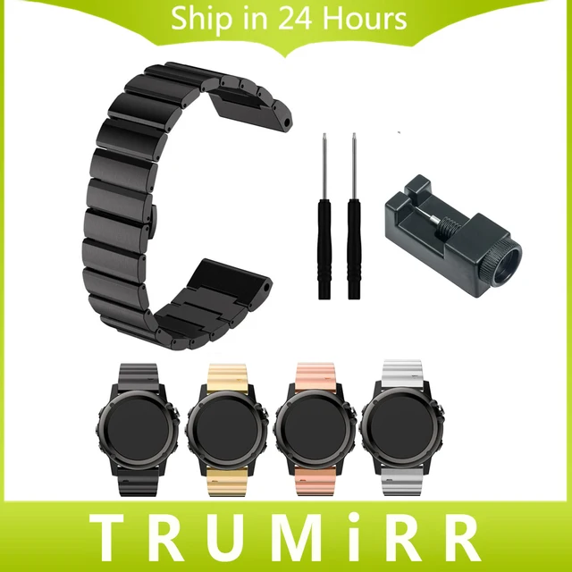 | [해외]26 미리메터 스테인레스 스틸 시계 밴드 + 링크 리무버 + 드라이버 대한 garmin 훼 3 hr 스트랩 butterfly 버클 스트랩 손목 팔찌 |