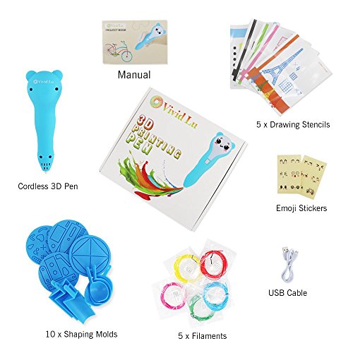 - PACKAGE INCLUDES : 3D printing pen, USB charger, 5 Stencils, 10 Molds, Emoji’s, User Manual, 5 DIFFERENT COLORS of 1.75mm PCL filament