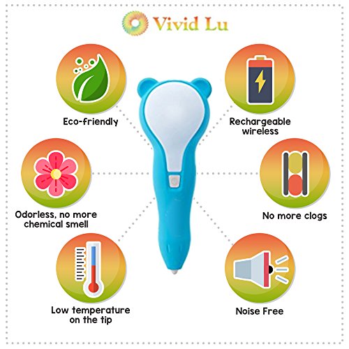 - EASY TO USE : There is no limit to the printing range, and adjustable feed lets you regulate speed and flow for optimal control of material while you're drawing. Product includes USB cable, you can charge it and use wirelessly anywhere and 10 stencils and 2 plastic mold can help kids making their dream easily