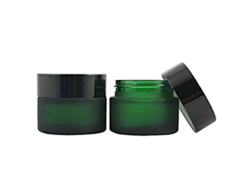 TOPWEL 30ML(1 OZ) Green Glass Empty Refillable Cosmetic Cream Jar Pot Bottle Container (4pcs)