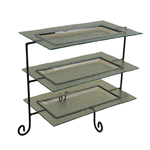 Essential Decor & Beyond EN110049 3Piece Glass Plate with Metal Stand