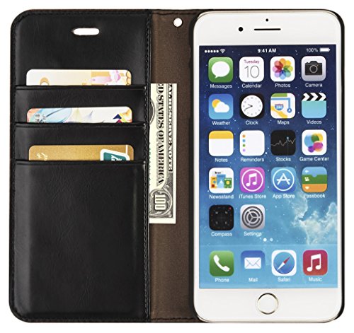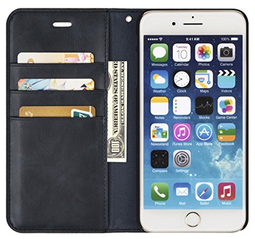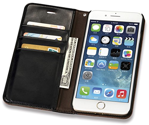 -. Feature : Specially Design Leather Wallet Case For iPhone 6 / 6S. / PREMIUM LEATHER MATERIAL: The leather case is entirely handmade of classy, sleek PU Leather. Each case is unique, reflects our quest for perfection in form, detail and fabrication. They look stylish and feel nature and soft. / VIEW FROM ANY ANGLE & PERFECT CUT-OUT: This wallet case can switched to a horizontal position and act as a firm stand. Kickstand design is for convenient free-hands use when watching movies or reading. / MULTI-FUNCTION WALLET CASE: This wallet folio includes 3 credit cards slots and 1 cash compartments. Smart Design allows you to easily flip the inner holder to access all your cards conveniently. Accessible to all the phone's functions such as camera, mike... / FULL PROTECTION FOR YOUR PHONE: Handcrafted from premium leather and the stitching is bold and reliable. Full Protection. Hidden magnet-closure secures the front cover. The little strap could be back on the back cover. / CONVENIENT TO USE: Precise cutouts for speakers, earpiece, camera and other functional ports allow to access to all ports and functions easily, without removing the case. Smart Design allows you to easily flip the inner holder to access all your cards conveniently. / Upscale Quality with Timeless Style, Crafted from premium leather, with a classic, vintage-style design, exquisite craftsmanship and workmanship, easy use and user friendly. Your iPhone will fall in love with this Flip Folio Wallet Stand up Credit Card Holder Leather Case.
