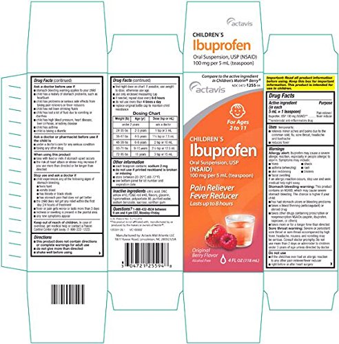 -. Title : 3 Pack Actavis Children's Ibuprofen Oral Suspension Usp, 100mg Per 5ml (Teaspoonful) Bubble Gum Flavor 4 Oz Each (Pack of 3) *Compare to the Active Ingredients Found in Children's Motrin and Save*