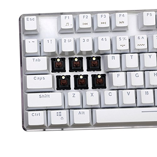 -. Binding : Personal Computers -. Brand : Qisan -. Color : GATERON Switch 108 keys brown Switch(white) -. Feature : Mechanical keyboard with GATERON brown switch, 108 keys full size,between gaming and type,called universal switches. / All keys rollover anti-ghosting mode is suitable for gaming and daily work and six keys anti-ghosting mode is suitable for part of bank and financial system. (Press Fn +Ins key to enter the six-key rollover mode. Press Fn+Del key to enter the all keys rollover mode.) / Very clear and bright buttons with adjustable lighting function,you can enjoy yourself in the dark night without the lamp. / The keycaps ergonomic keyboard profile with contoured double colour injection keycap. / WIN KEY lock function with LED status indicator to prevent accidental hitting of the WIN KEY.(Windows keys is enabled when F8 is not illuminated (default). Windows key is disabled when F8 is illuminated. This setting prevents the accident hitting of the windows key while gaming.) -. Label : Qisan -. Manufacturer : Qisan -. Model : 6937524511399 -. MPN : 6937524511399 -. PackageQuantity : 1 -. PartNumber : 6937524511399 -. ProductGroup : PC Accessory -. ProductTypeName : KEYBOARDS -. Publisher : Qisan -. Studio : Qisan -. Title : Mechanical Keyboard Gaming Keyboard Brown Switch 100% Full Size 108 keys GATERON switch with White Backlight Case White Magicforce by Qisan
