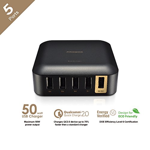 Mediasonic Qualcomm Certified QC 2.0 50W 5 Port USB Charger (Black)