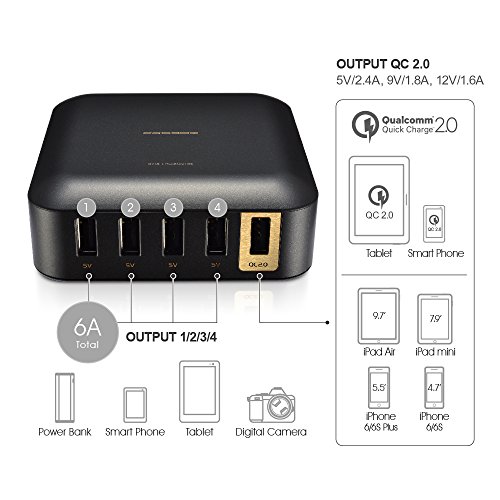 The QC 2.0 Port provides 5V / 2.4A, 9V / 1.8A, 12V / 1.6A power output,Provides maximum 50W power output