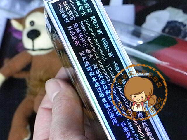 ◆蛇床子油,韭菜子油,生姜油,茶树油,肉桂等纯天然植物泡制而成,棕红色澄明液体,带来茉莉花香的中草药气味