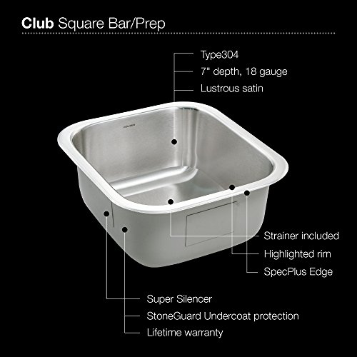 Houzer MS-1708-1 Club Series Undermount Stainless Steel Square Bowl Bar/Prep Sink